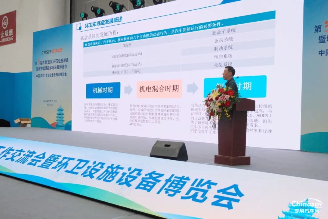 在展会主论坛上,创维汽车整车设计院副院长、专用车产品线总监张志红分享了行业前瞻洞察。他指出,环卫车底盘正经历从机械到智能的深刻变革,而未来智能底盘的核心,正是电动化、集成化与智能化。这一趋势与创维汽车的技术发展路径高度契合,为我们引领新能源环卫时代奠定了坚实的核心基础。