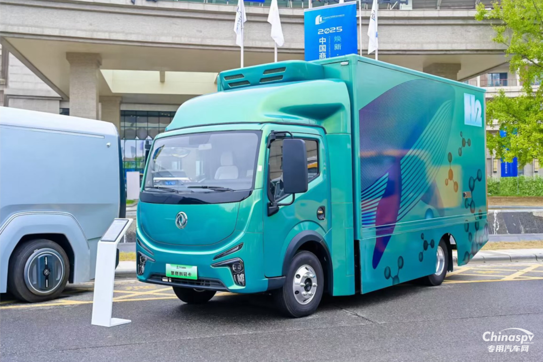东风新一代氢燃料轻卡——作为东风股份首款基于氢燃料平台开发的4.5吨级轻卡,实现了高效节能与零排放的完美结合。该车搭载90kw功率的氢燃料电池系统,配备15.45kWh磷酸铁锂电池组,续航里程超过500公里。永磁同步电机的峰值功率达到120kw,动力强劲,充分满足冷链、城郊配送、城市物流等场景对高效补能与长效运营的双重需求,为新能源轻卡市场提供了创新解决方案。
