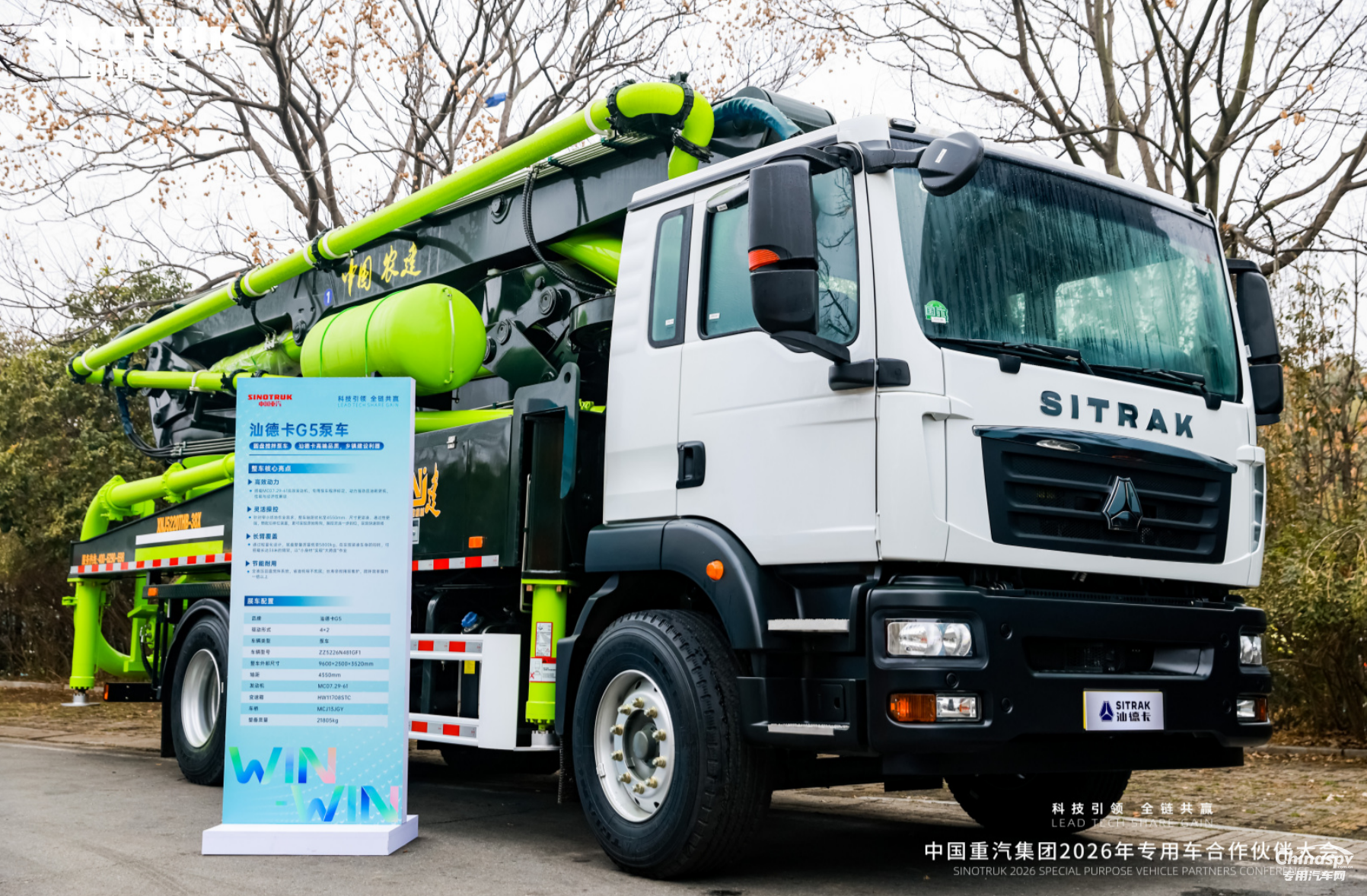 在中国重汽2026年专用车合作伙伴大会上,汕德卡携多款重磅车型集中亮相。汕德卡G5泵车作为焦点车型之一,正是中国重汽“深度适配场景”的体现。其搭载专用泵车程序标定的MC07.29-61高效发动机,动力强劲且油耗更低,产品力与经济性兼顾!更通过轻量化设计,底盘整备质量低至5800kg;在实现紧凑车身的同时,可搭载长达38米的臂架,以“小身材”实现“大跨度”作业!强大实力的背后,是中国重汽对“专用”二字的极致理解:不是简单“上装+底盘”的适配,而是深入场景——从动力、结构到控制逻辑的全局把握。